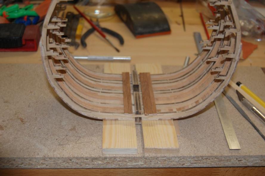 Höher kann man dies aber nicht machen, da im weiteren Bauverlauf noch Spantensegmente von innen eingeklebt werden.