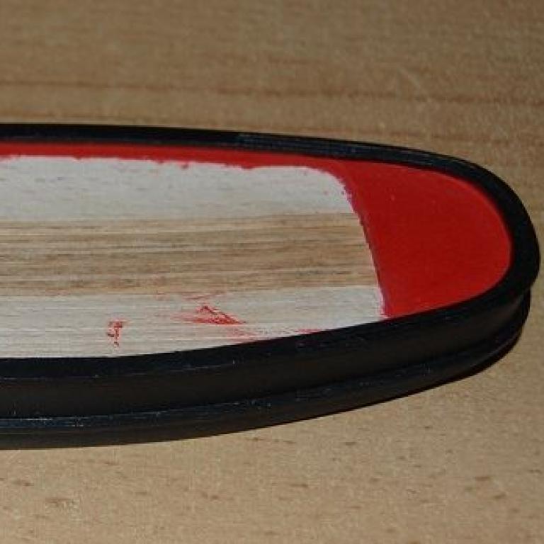 Bis jetzt habe ich die Dollbords aus 2x2 mm Leisten angebracht und die Laserteile für die Brüstung. Die Leisten 1x1 mm beidseits der Brüstung ergeben den 4mm breiten Handlauf. Die Brüstung und das erhöhte Deck sind laut Anleitung rot gestrichen. Der Rumpf bekommt einen schwarzen Anstrich.