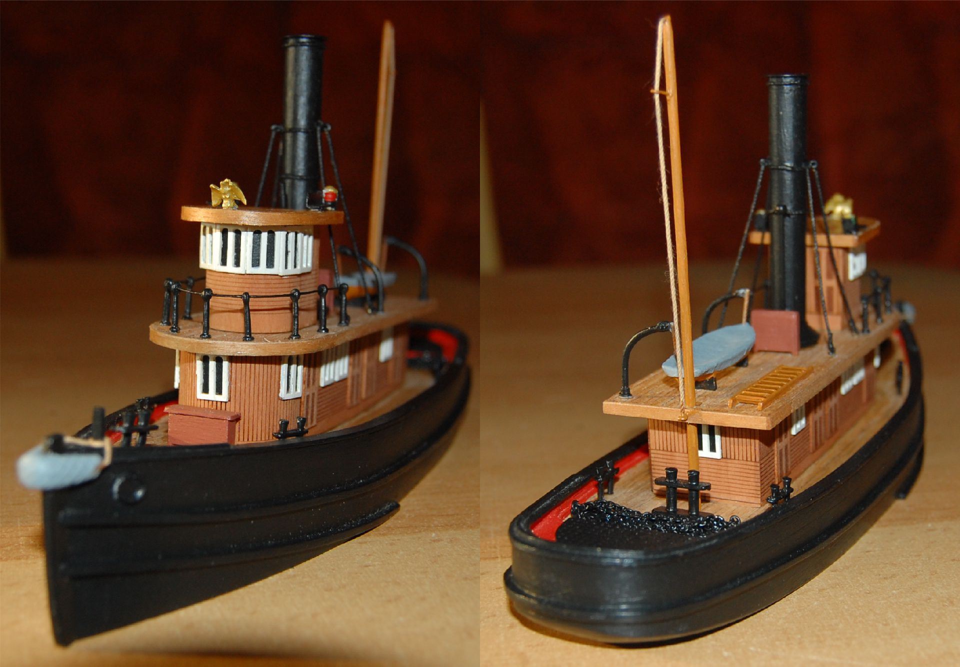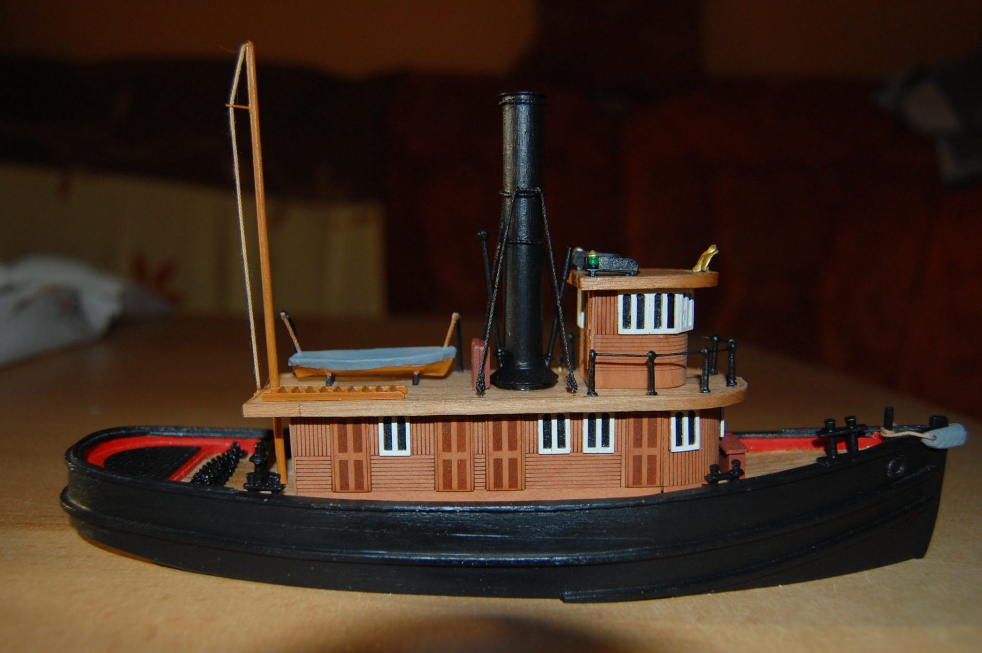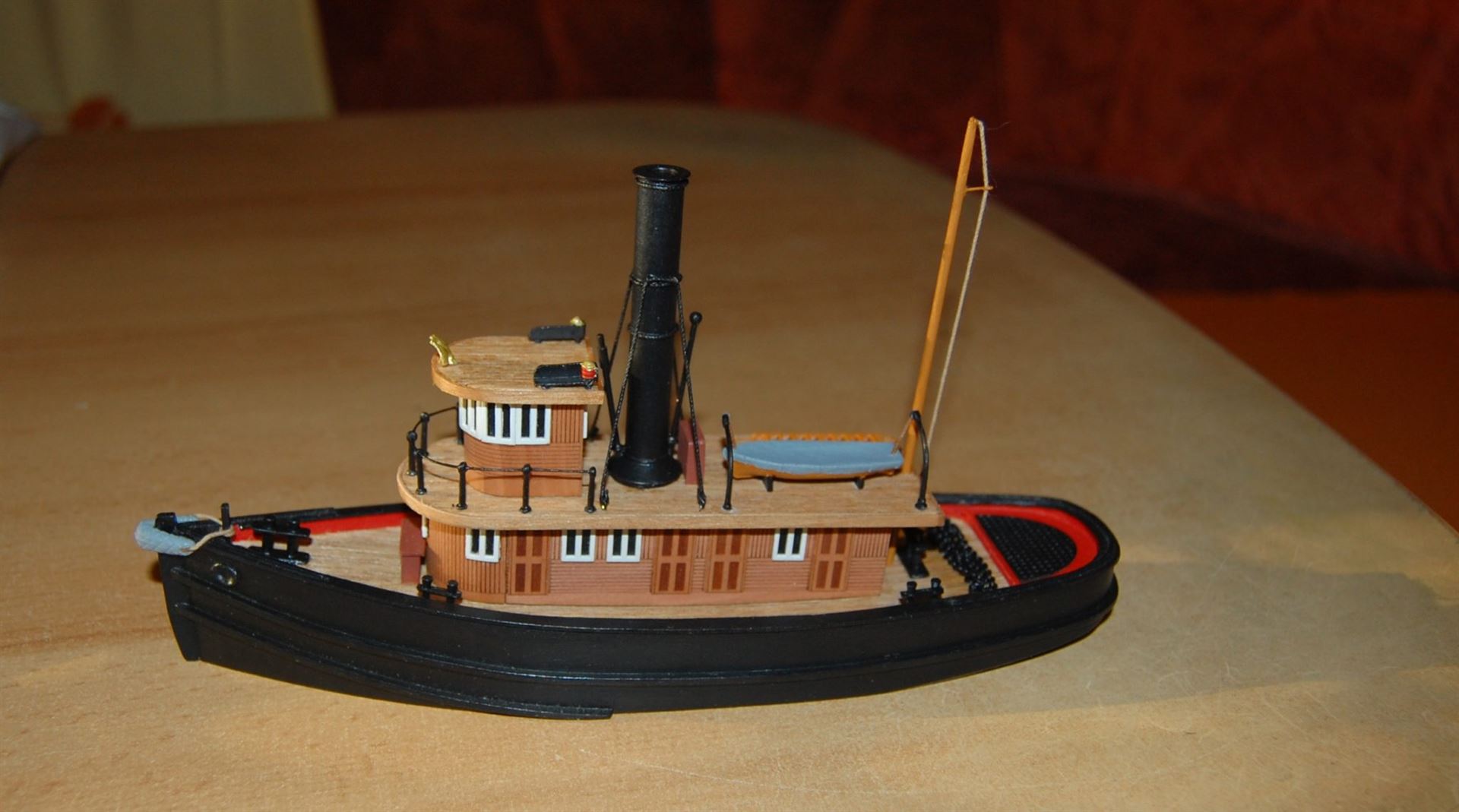 Im nächsten und gleichzeitig letzten Bauabschnitt werden die einzelnen Teile der Aufbauten zu einem Aufbau zusammengefügt. Der Schornstein und alle anderen Beschlag und Zierteile kamen noch dazu. Dafür ist bei der geringen Größe doch etwas Geduld nötig. Das Ergebnis sieht aber gut aus.
