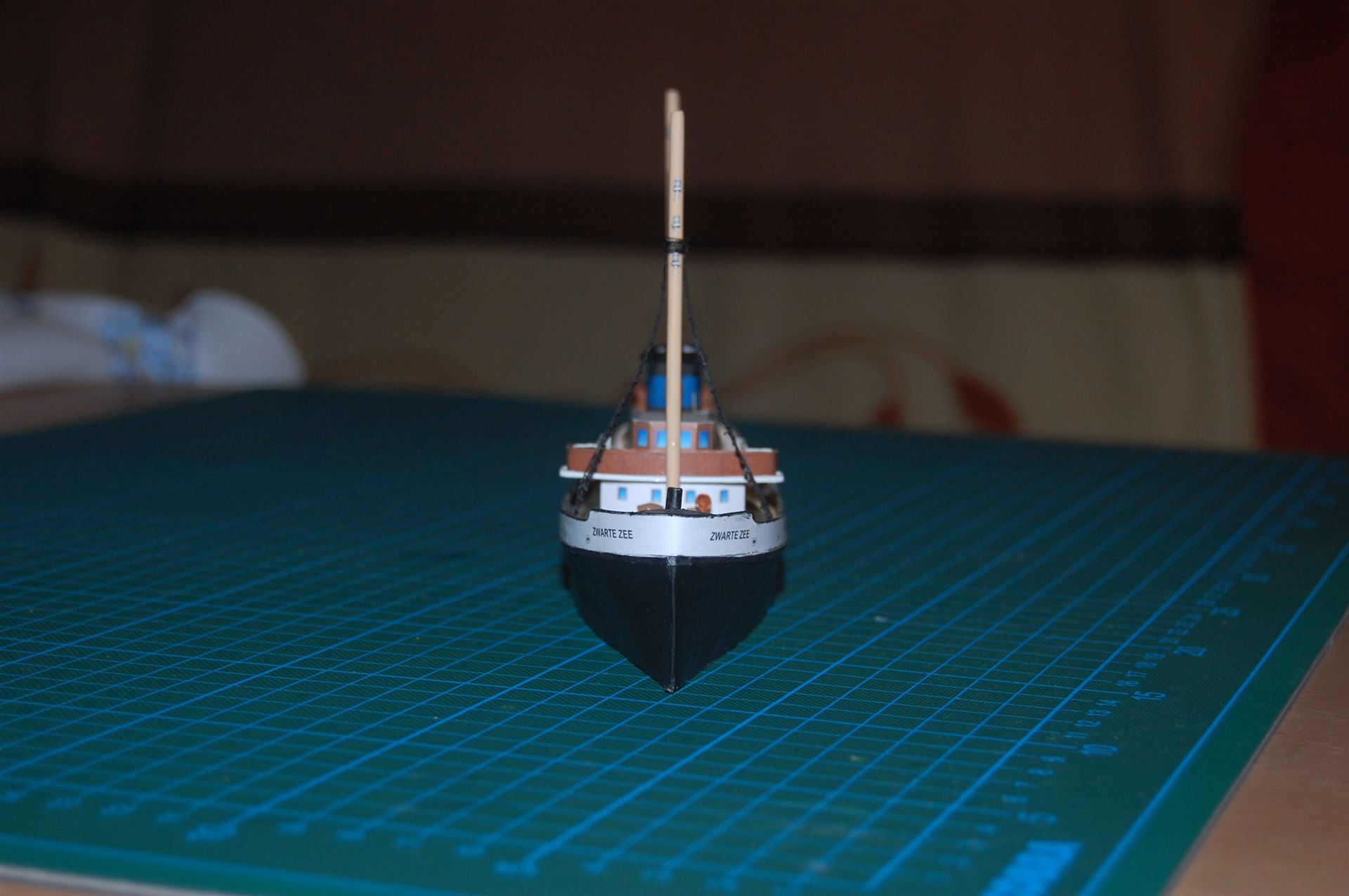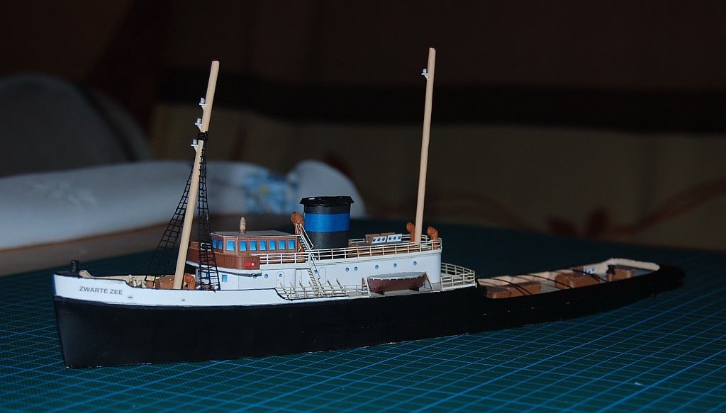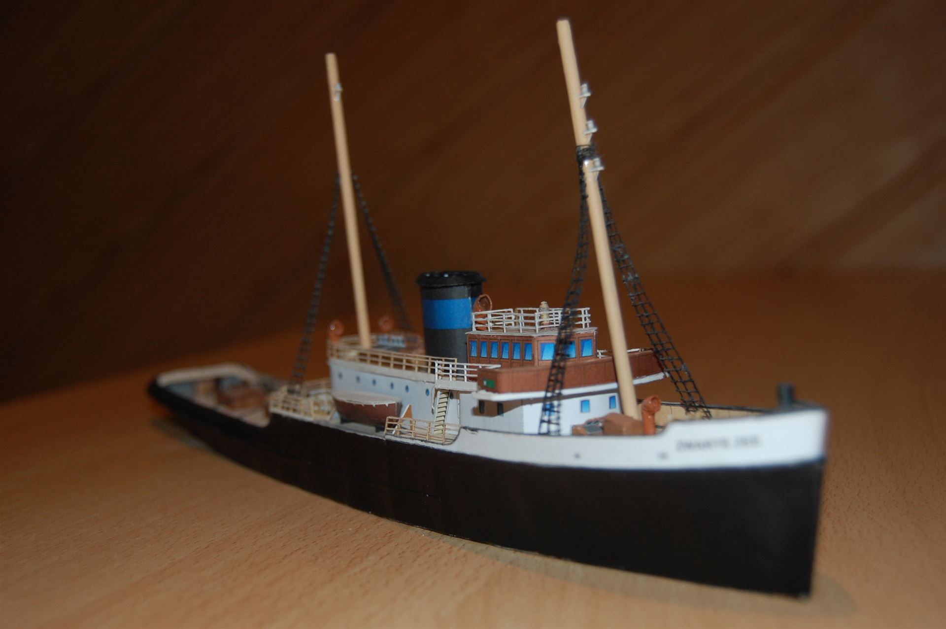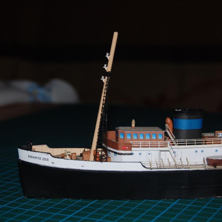 Als erstes Projekt nehme ich ein Kartonmodell des "Zwarte Zee" in Angriff. Dies schien mir ein nicht zu schweres Modell zu sein, aber ich habe mich getäuscht. Dazu in weiteren Artikeln mehr. Im Hintergrund ist der Umschlag des Modellbaubogen zu sehen. Der Bogen wurde für einen Modelbauclub aus den Niederlanden entworfen, hat aber auch eine deutsche Anleitung. Im Vordergrund ist das schon fertiggestellte Spantengerüst zu sehen. Im weiteren Verlauf wurde das Unterwasserschiff wieder entfernt. Ohne diesen Teil baut es sich besser, da der Rumpf so fest auf der Bauunterlage aufliegt. Nun ging es weiter mit dem Rumpf und dem Deck. Die Seitenwände bestehen auf jeder Seite aus einem Teil und wurden von Spant zu Spant aufgeklebt.