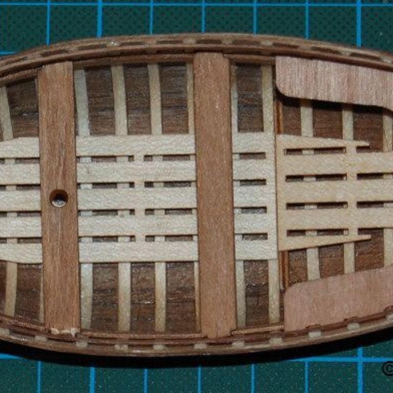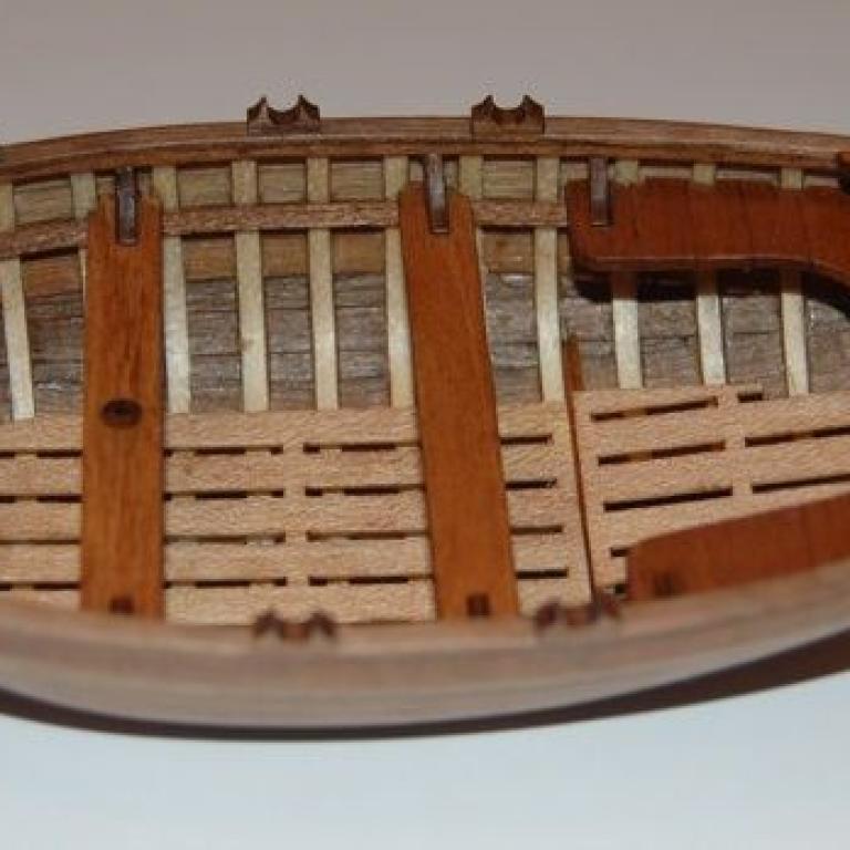 Die Hecksitzbank wurde noch mal etwas verstärkt, so das die Stärke den Sitzbänken entspricht. Das Ruder wurde mit Resten der Beplankung verkleidet und ist fertig. Die Mastbankknie sind nun endlich eingebaut. Ein wenig Sandpapier und Feile angelegt und nun passt alles. Ich habe mich erst zu sehr an die geschriebene Anleitung gehalten, nur die Zeichnungen ansehen bringt viel mehr. In den Bildern war die Lösung. Das ganze Boot wurde mit Seidenmattlack gestrichen. Ich mag diesen seidigen Glanz.